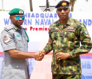 The Customs Area Controller (CAC), Apapa Area Command, Comptroller Emmanuel Oshoba, on Wednesday, 25 February 2026, paid a courtesy visit to the Flag Officer Commanding (FOC), Western Naval Command, Rear Admiral Abubakar Abdullahi Mustapha, to deepen operational collaboration in line with the Three (3) policy thrusts of Consolidation, Collaboration and Innovation of the Comptroller-General of Customs, Bashir Adewale Adeniyi, MFR, PhD.